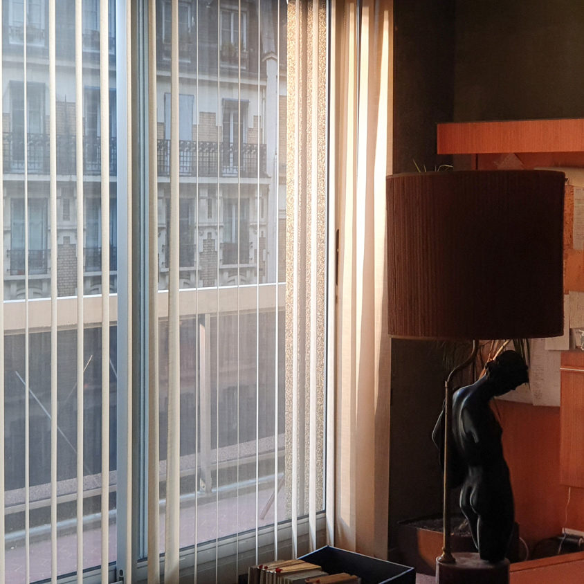 La photographie donne l’impression que l’appartement recréé en studio est en étage.