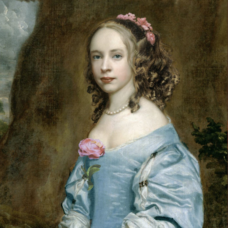 Incrustation des visages des comédiens pris en photo dans les reproductions des tableaux par Nathalie Delvigne.